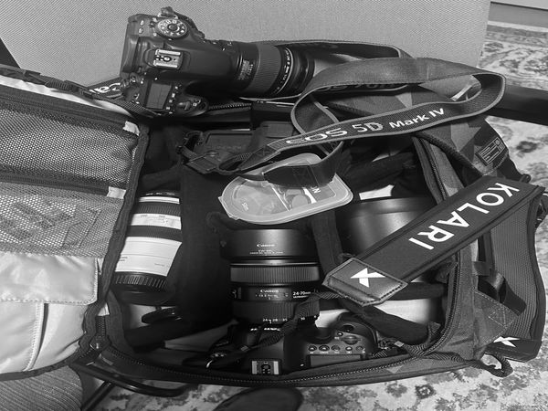 • GLACIER CAMO CINEMA BACKPACK - Good space for a couple  cameras, lenses and everything I need.